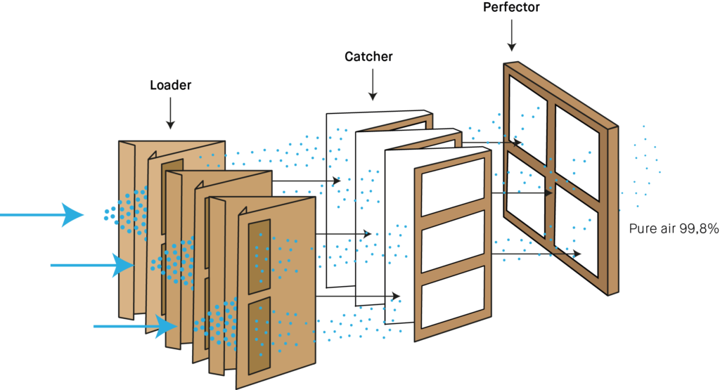 And finally, the Perfector will trap the remaining particles to achieve a 99,8% filtration efficiency.